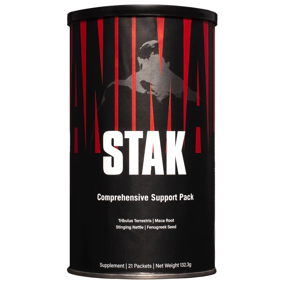 Animal Stak es un suplemento integral, natural y anabólico diseñado para ayudar a los hombres a desarrollar músculo magro. El suplemento está repleto de cinco complejos únicos para aumentar los niveles naturales de testosterona y apoyar la elevación de la hormona del crecimiento (GH), lo que le brinda una mayor masa muscular, fuerza, energía y vitalidad.