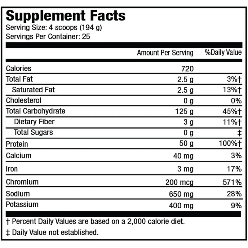Carnivor Mass se conoce comúnmente como "superalimento anabólico" y es más avanzado que el típico ganador de masa. Donde los alimentos regulares y los ganadores típicos pueden estar limitados en términos de velocidad de absorción y el potencial de aumento de la insulina, CARNIVOR MASS sobresale. 25 servicios.