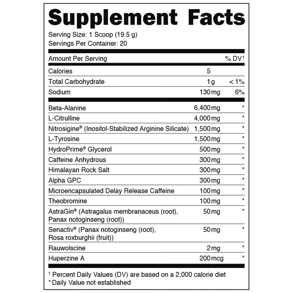 Presentamos…a Mother primordial de todos los pre-entrenamientos; el alfa y el omega; la fórmula pre-entrenamiento más intensa que nosotros, o cualquier otra persona, haya creado jamás: nuestra obra maestra, por así decirlo. ADVERTENCIA: Esta fórmula NO es apta para principiantes.