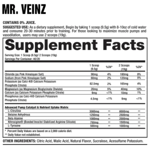 Mr. Veinz utiliza un enfoque de múltiples vías para lograr la máxima vasodilatación. Cargado con ingredientes para abordar la relajación de los vasos sanguíneos, aumentar el flujo sanguíneo, mejorar la producción de óxido nítrico.