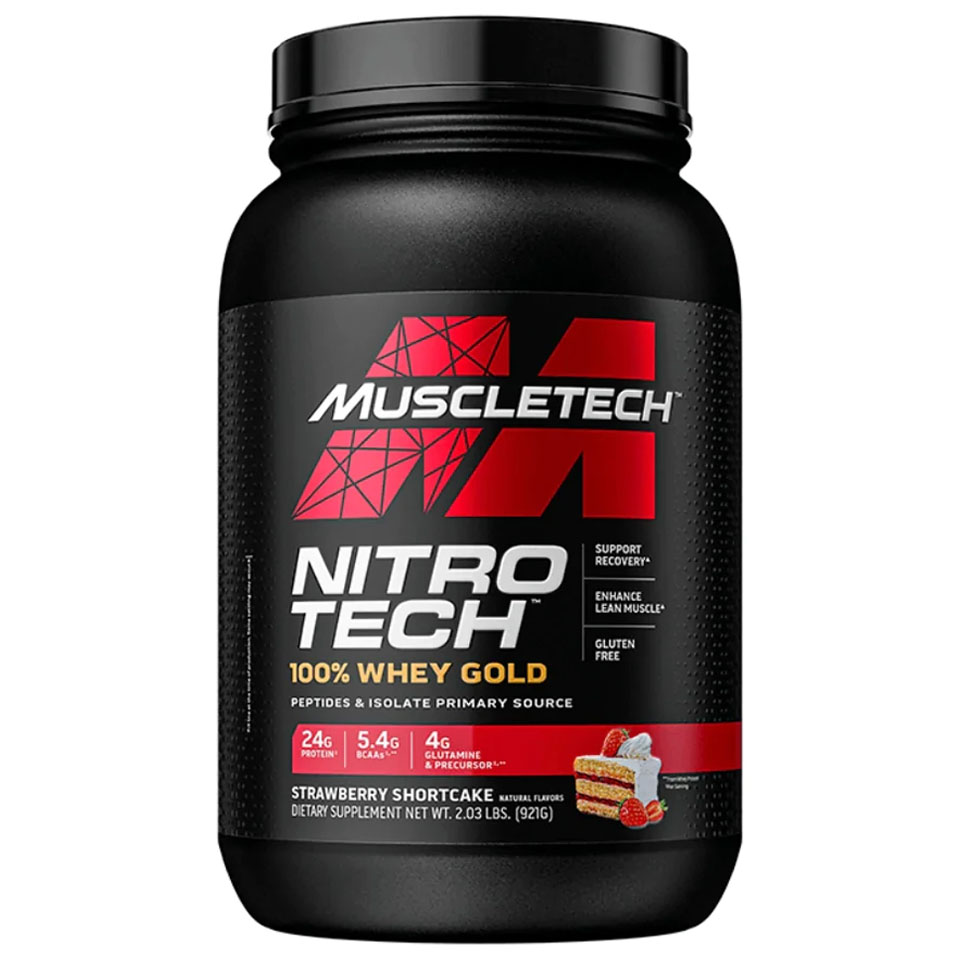 Nitro Tech Whey Gold contiene 24 g de péptidos de proteína de suero y aislado para respaldar una recuperación rápida.