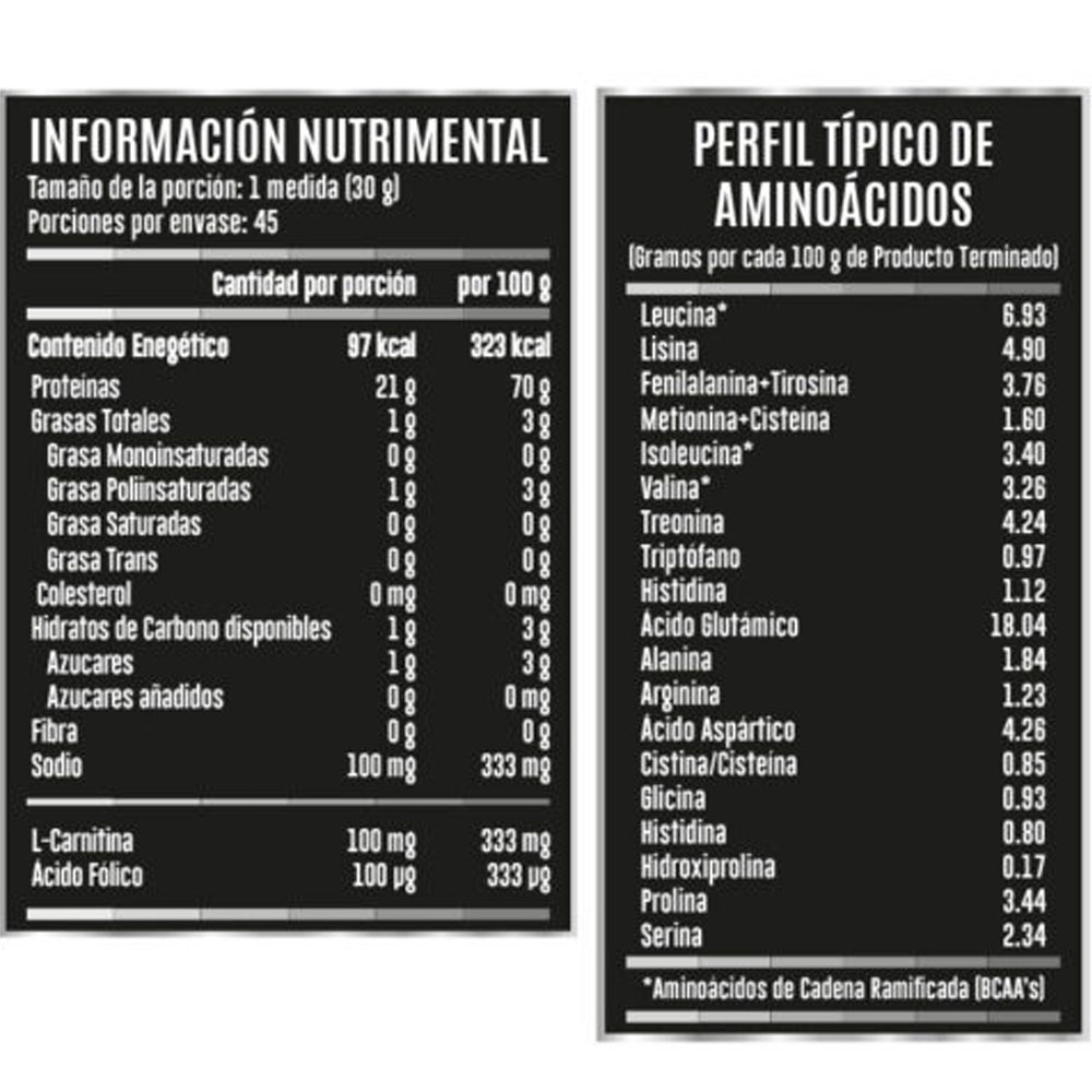 Contiene colágeno, ácido fólico, carnitina y bcaas, puede tener varios beneficios para la salud.